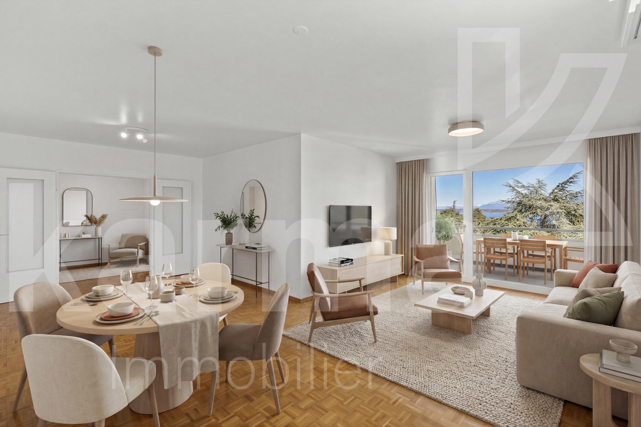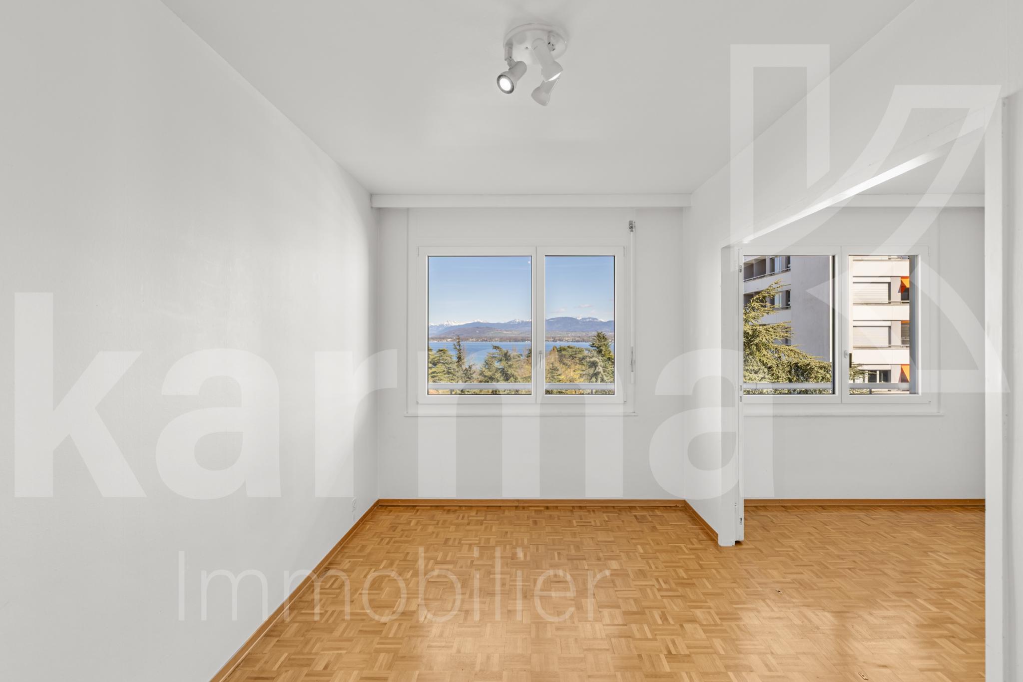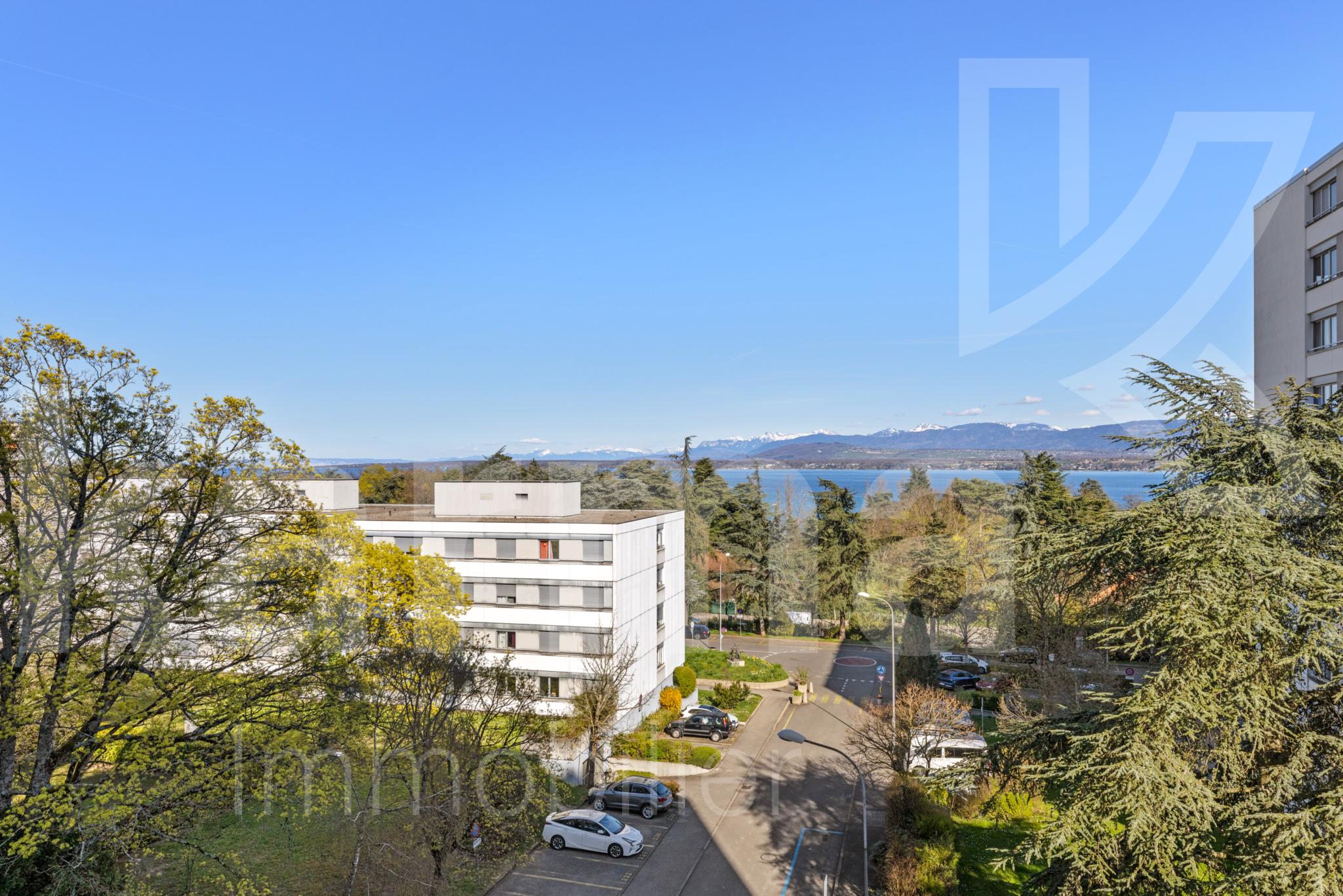 Découvrez ce magnifique appartement situé au 5ème étage, et offrant une vue incroyable sur les Montagnes et le lac de toutes les pièces de l'appartement.